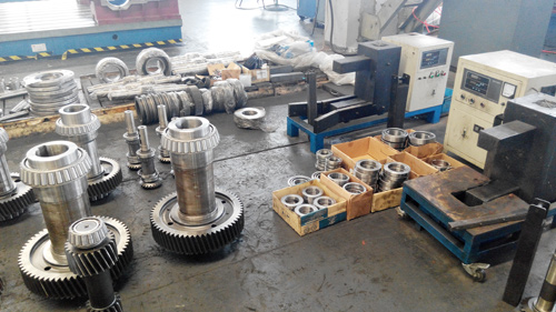 高溫環境(通常指環境溫度≥40℃或減速機工作溫度≥90℃)下,減速機散熱的核心是通過 “強化熱量傳導 / 對流 / 輻射”“降低自身產熱”“隔離外部熱源” 三大邏輯,結合工況(如負載、連續運行時間、粉塵 / 腐蝕環境)選擇適配方案。以下是 6 類實操性散熱方式,含原理、結構細節、適用場景及維護要點,可直接用于生產改造或選型:一、基礎散熱(無需額外設備,成本最低,適用于環境溫度 40-60℃、輕中載)1. 增大箱體散熱面積(核心:強化自然對流)原理:通過優化箱體結構,增加熱量與空氣的接觸面積,加速自然散熱。結構 / 工藝細節:箱體外側加工 縱向散熱片(厚度 3-5mm,間距 15-25mm,避免過密導致氣流阻塞),材質優先選 HT200 灰鑄鐵(導熱系數 45-50W/(m?K))或鋁合金 ADC12(導熱系數 110-130W/(m?K),輕量化且散熱更快);散熱片方向與氣流方向一致(如安裝時讓散熱片沿垂直方向,利用熱空氣上升形成自然對流);箱體表面做 發黑處理(氧化層厚度 5-8μm),提升輻射散熱效率(比未處理表面散熱效率高 15-20%)。適用場景:室內通風良好、無粉塵堆積、連續運行但負載波動小的場景(如流水線輸送帶、小型風機配套減速機)。維護要點:每周清理散熱片表面粉塵(用壓縮空氣吹掃,壓力 0.4-0.6MPa,避免高壓損壞氧化層)。2. 高溫專用潤滑油選型(核心:降低摩擦產熱 + 提升熱穩定性)原理:潤滑油不僅潤滑,還通過循環帶走內部熱量,高溫環境需避免油液粘度下降過快或氧化失效。選型標準:粘度等級:優先選 ISO VG 46/68/100(根據減速機型號,如硬齒面減速機常用 VG 68,蝸輪蝸桿減速機常用 VG 100),高溫下粘度指數(VI)≥120(確保溫度變化時粘度波動小);油液類型:合成油(如 PAO 聚 α- 烯烴、酯類油)或半合成油,閃點≥220℃,傾點≤-15℃,氧化安定性(ASTM D943)≥1000 小時(避免高溫下生成油泥堵塞油路);添加劑:含抗磨劑(如 ZDDP)、抗氧化劑(如酚類)、消泡劑(硅酮類),防止高溫下磨損和油液起泡。實操要點:油位控制在油窗中線(過高會增加攪拌阻力,產熱增加;過低會導致潤滑不足);換油周期縮短 30-50%(如常溫下換油周期 6000 小時,高溫下縮短至 3600-4200 小時),定期檢測油液顏色(變黑、有異味需立即更換)和粘度(變化超過 20% 需換油)。適用場景:所有高溫環境減速機,尤其重載、連續運行的齒輪減速機(如礦山機械、冶金設備)。3. 自然通風優化(核心:減少熱空氣積聚)安裝要求:減速機與熱源(如熔爐、鍋爐)保持≥1.5m 距離,避免直接輻射;安裝位置高于地面≥30cm,箱體底部預留通風空間(≥10cm),避免地面熱量傳導;室內環境需保證通風量≥5m3/(m2?h),必要時加裝排風扇(風速≥1m/s),避免熱空氣循環積聚。適用場景:室內常溫偏高(40-50℃)、無粉塵的輕載場景(如包裝機械、小型輸送線)。二、主動散熱(需額外設備,散熱效率高,適用于環境溫度 60-100℃、重載 / 連續運行)1. 強制風冷系統(最常用,成本中等,維護便捷)原理:通過外置風扇強制氣流吹過散熱片,加速對流散熱,散熱效率是自然散熱的 3-5 倍。結構類型與選型:一體式風扇(直接安裝在減速機輸入端軸上,隨電機同步轉動):適用:電機轉速≥1450rpm、環境粉塵少的場景(如通用機械);選型參數:風扇直徑≥120mm,風量≥80m3/h,風壓≥50Pa,材質為工程塑料(PA6 + 玻纖)或鋁合金(耐高溫≥120℃)。獨立式散熱風機(外置電機驅動,與減速機分離):適用:電機低速運行(≤1000rpm)、粉塵多、高溫環境(≥80℃);選型參數:風機風量≥150m3/h,風壓≥80Pa,電機防護等級 IP54(防塵防水),耐高溫≥150℃,可搭配溫控開關(設定溫度≥85℃時啟動,≤60℃時停止)。安裝與維護:風扇出風口朝向氣流方向(避免逆風),與散熱片間距≥5cm,確保氣流全覆蓋散熱片;每周清理風扇葉片和散熱片粉塵(用毛刷 + 壓縮空氣,避免粉塵堆積影響風量);每 6 個月檢查風扇軸承潤滑(加注高溫潤滑脂,如鋰基脂 NLGI 2,耐高溫≥120℃)。適用場景:大多數工業高溫環境(如冶金、化工、建材行業的重載減速機)。2. 水冷冷卻系統(散熱效率極高,適用于環境溫度≥100℃或空間狹小無通風)原理:通過冷卻水循環帶走潤滑油或箱體的熱量,冷卻效率是風冷的 2-3 倍,適合極端高溫場景。結構類型:套管式冷卻器(內置式):安裝在減速機油箱內,冷卻水通過套管與潤滑油間接換熱,冷卻面積≥0.5m2,冷卻水流量≥5L/min,進水溫度≤35℃;板式冷卻器(外置式):與減速機油箱形成循環油路,潤滑油流經冷卻器與冷卻水換熱,換熱效率高(比套管式高 30%),適合大流量、高溫場景(如水泥回轉窯減速機)。關鍵參數與安裝要求:冷卻水水質:pH 值 7-9,硬度≤250mg/L(避免結垢堵塞管道),需加裝過濾器(過濾精度≥50μm);壓力控制:冷卻水進水壓力 0.2-0.4MPa,出油壓力≥0.1MPa,避免壓力過高損壞冷卻器;溫控調節:加裝溫度傳感器(PT100)和電動三通閥,當潤滑油溫度≥85℃時加大冷卻水流量,≤60℃時減小流量。維護要點:每月檢測冷卻水水質,每 3 個月清洗冷卻器管道(用 5% 檸檬酸溶液循環清洗 30 分鐘,去除水垢);冬季停機后排空冷卻水,避免凍裂管道;定期檢查密封件(如 O 型圈,材質選氟橡膠 FKM,耐高溫≥150℃),防止漏水。適用場景:極端高溫(如靠近熔爐、鍋爐)、重載連續運行(如冶金連鑄機、礦山破碎機)、空間狹小無通風的場景。3. 油冷循環系統(外置式,適用于大功率、高負載減速機)原理:外置油箱 + 冷卻器 + 循環泵,將減速機內的高溫潤滑油抽出,經冷卻器冷卻后送回,適合大功率(≥110kW)、高負載(工